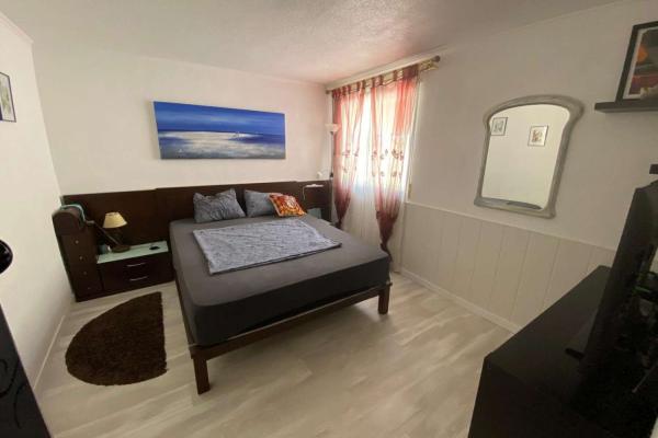 The property features a private entrance and a spacious sunny terrace, perfect for relaxing or entertaining family and friends. A covered porch leads to a spacious and bright living area, combining an open-plan living and dining area, equipped with air conditioning for optimal comfort all year round. The separate, fully equipped kitchen includes all the necessary appliances for convenient and pleasant daily use.